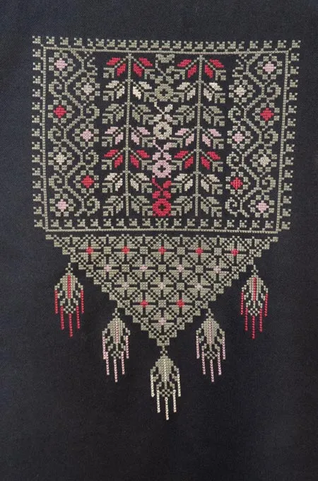 Featuring traditional Makrama Qubbeh-style embroidery enriched with detailed stitching and delicate mirror accents, its olive-inspired tones highlight the beauty of Central Region craftsmanship. With generous dimensions of 225 cm × 48 cm, it drapes elegantly, making it perfect for daily wear and special occasions.
