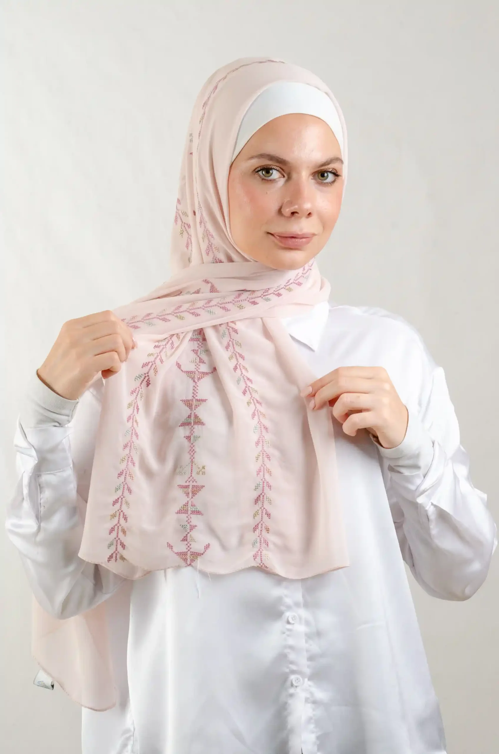 Enjoy the sophisticated style of our Cypress Vine Rose Tatreez Shawl, designed with premium Georgette chiffon fabric for lasting comfort throughout the day. Featuring delicate Tatreez embroidery in Cypress Vine Rose, this shawl captures the essence of cultural heritage while embracing a modern aesthetic. With its graceful drape, the Cypress Vine Rose Tatreez Shawl transitions seamlessly from casual daily wear to refined gatherings. Easy to style and maintain, it adds timeless charm and elegance to any wardrobe.