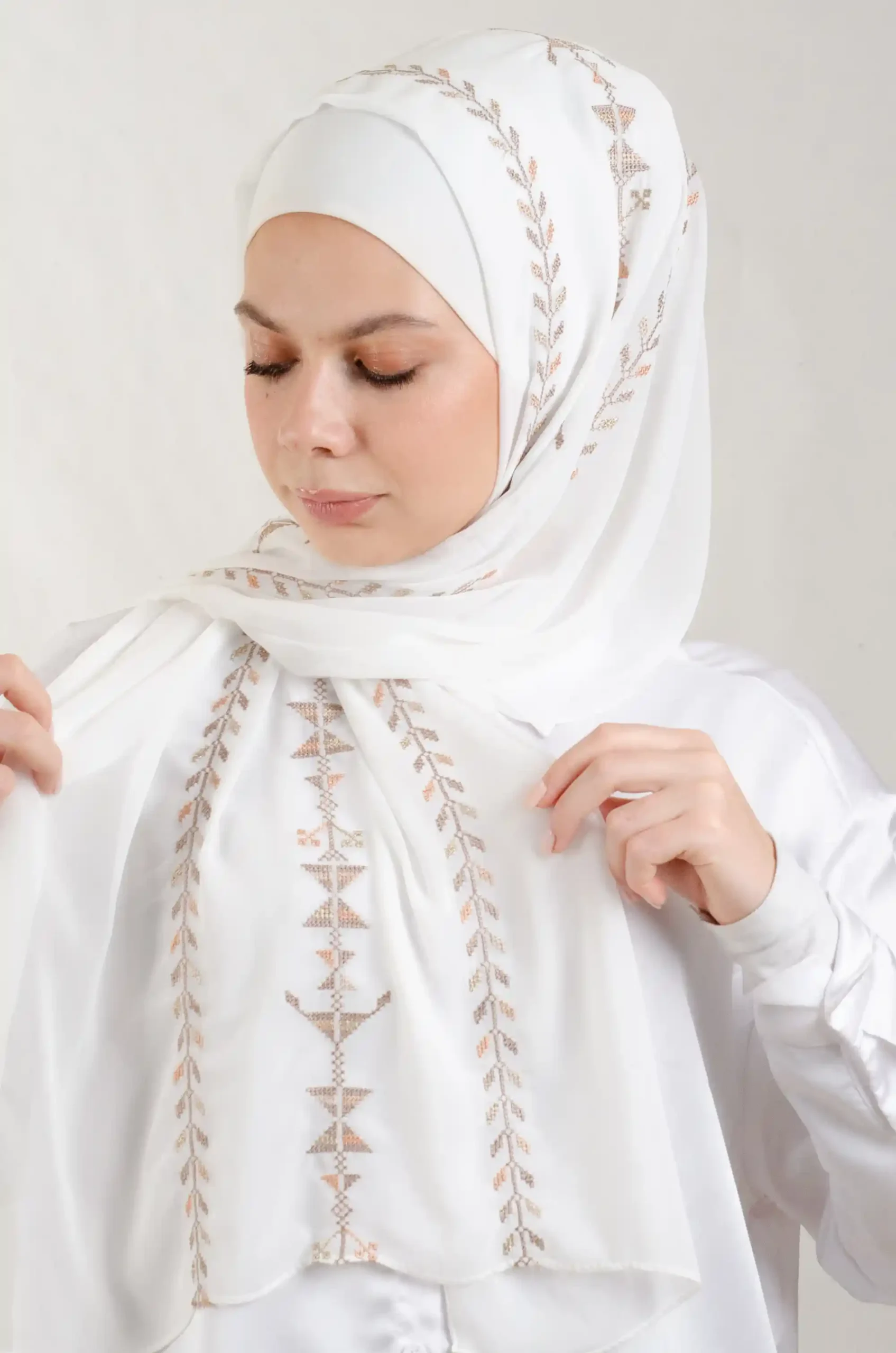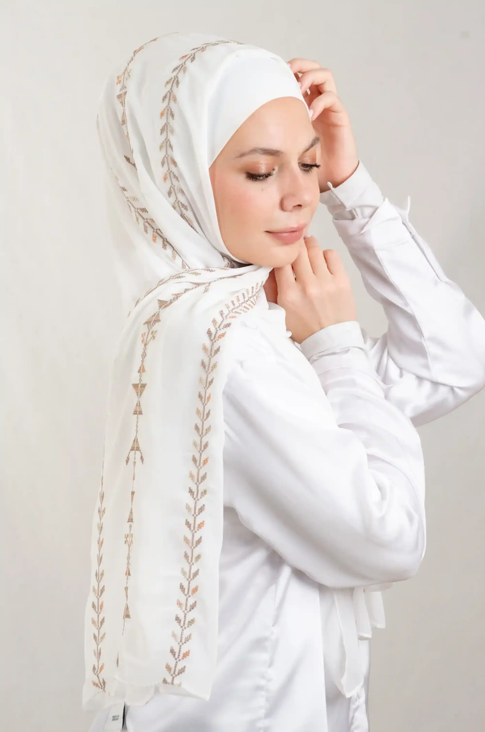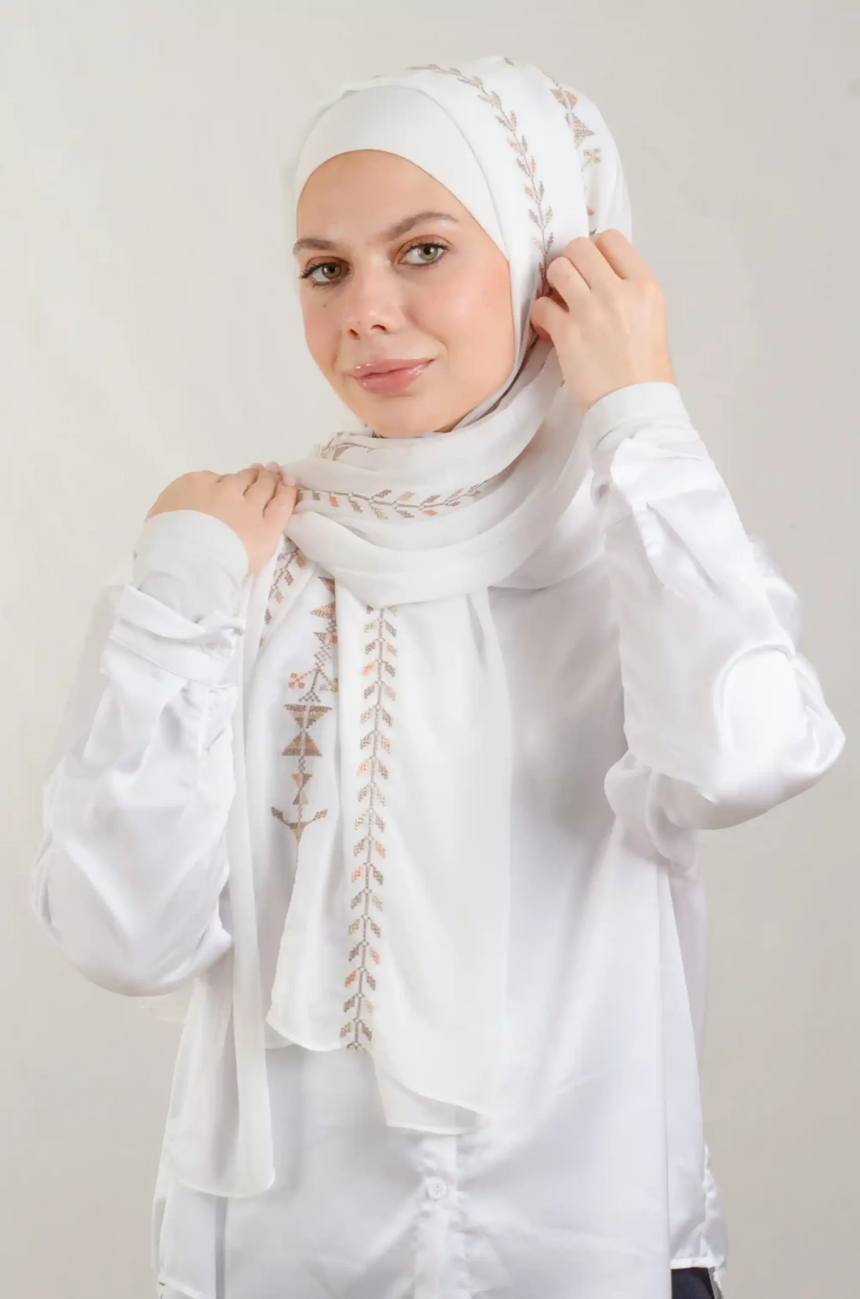 Enjoy the sophisticated style of our Cypress Vine Sand Tatreez Shawl, designed with premium Georgette chiffon fabric for lasting comfort throughout the day. Featuring delicate Tatreez embroidery in Cypress Vine Sand, this shawl captures the essence of cultural heritage while embracing a modern aesthetic. With its graceful drape, the Cypress Vine Sand Tatreez Shawl transitions seamlessly from casual daily wear to refined gatherings. Easy to style and maintain, it adds timeless charm and elegance to any wardrobe.