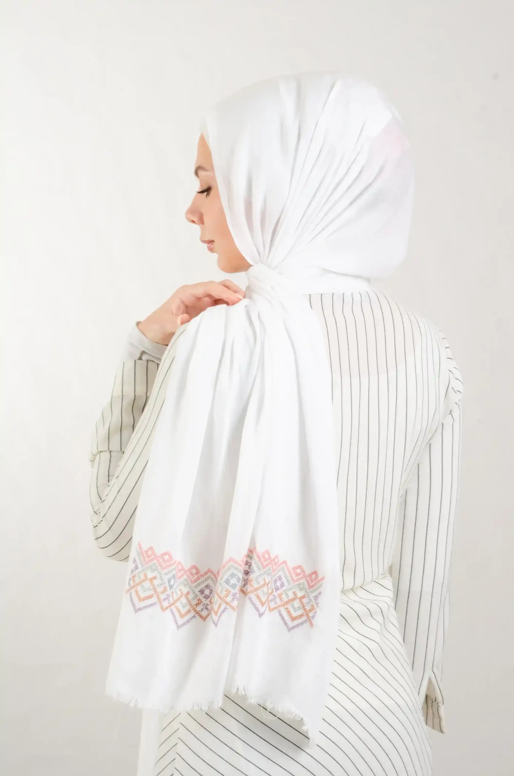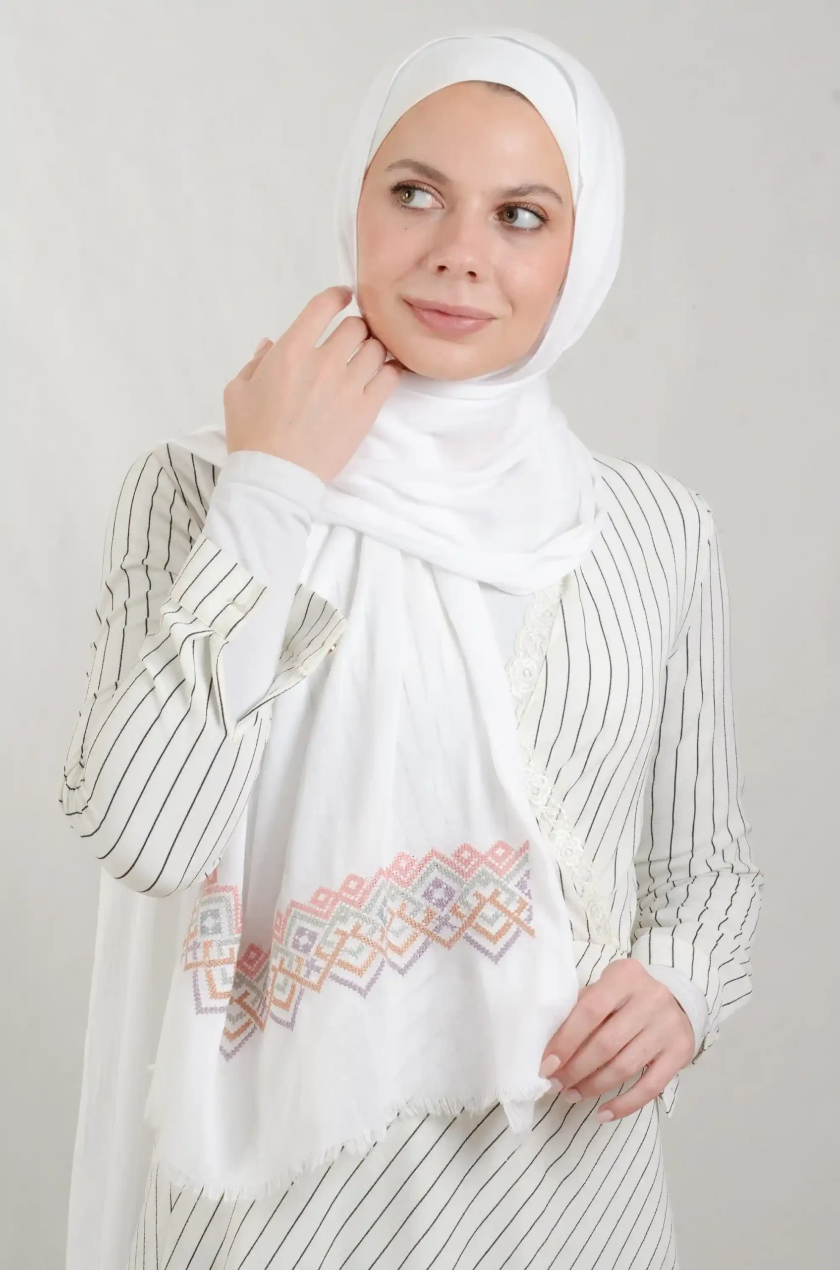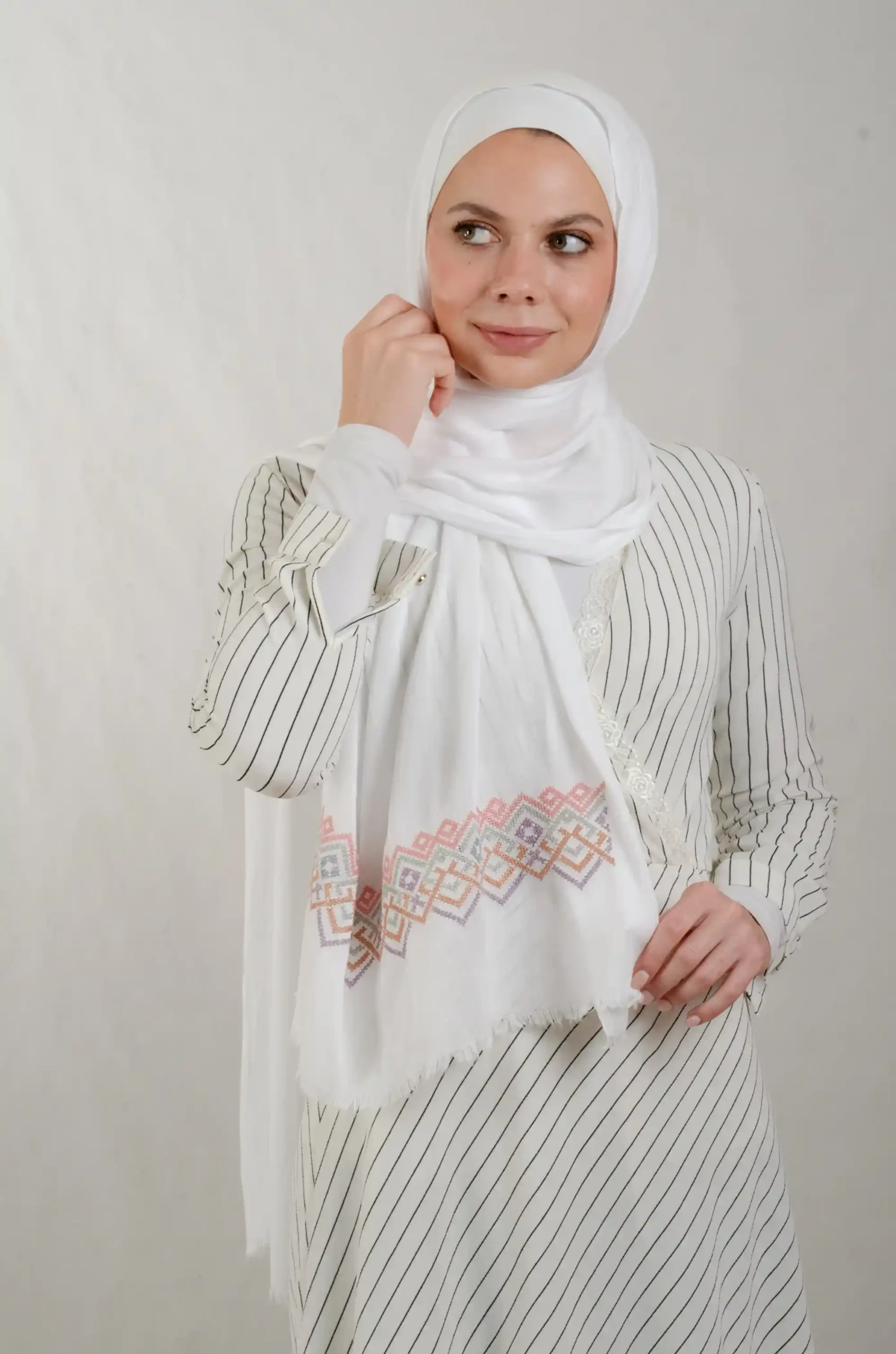 Step into cultural elegance with our Mountain Modal PeachMix Tatreez Shawl, crafted from soft cotton fabric that ensures comfort and ease. Adorned with the Mountain motif in Offwhite, this shawl embodies the beauty of traditional embroidery while offering a fresh, modern appeal. With its flowing drape and versatile style, the Mountain Modal PeachMix Tatreez Shawl is ideal for both daily wear and special gatherings. Convenient to maintain and simple to style, it delivers charm, comfort, and heritage in one timeless piece.